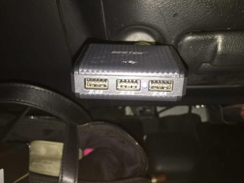 このカーチャージャーを使えば、シガーソケット給電の機器も使え、USB給電の機器も3台使え、しかも急速充電できる。