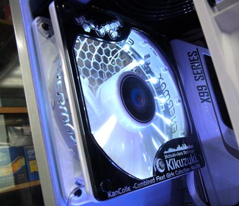元々この辺はCPUクーラー等を見せるためにサイドパネル側に彫刻をいれてなかったので、覗き込んだ時にいい感じに自己主張してくれる。