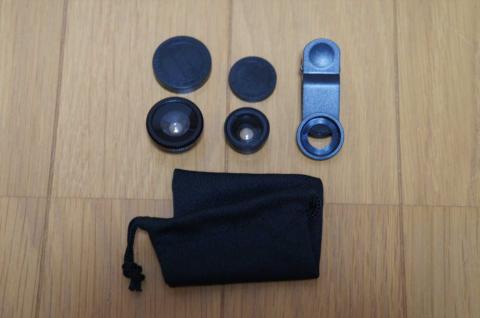 レンズは3種類あり、魚眼、ワイド、接写です。持ち運びに便利なポーチも付属しています。