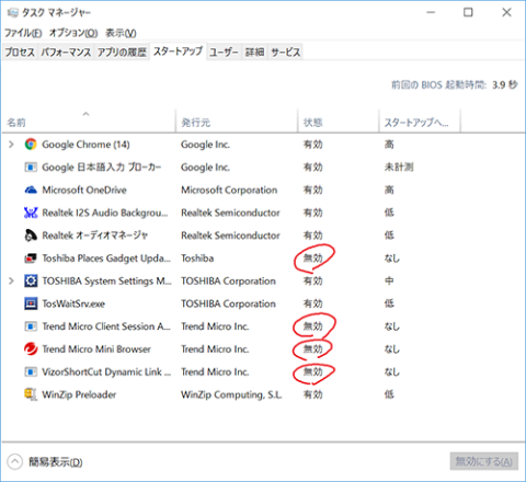 トレンドマイクロ関連、東芝プレイスガジェット を無効にする