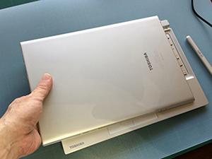 このような薄い限られたスペースに、液晶のみならずCPUもメモリもディスクもバッテリーもすべてビルドインしたうえで軽量化が実現されているのは感嘆に値します。