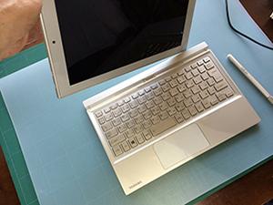 特にプレゼンの壇上などではアクシデントがつきものなので、はじめからキーボードは外してタブレットのスタイルとして、操作はタッチ操作と無線デバイスで行うような使い方の方が良いかもしれません。