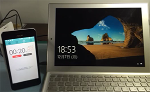 なお、Windowsが動作している時に電源ボタンを短く押すと画面が消えてスリープに入ります。同じく長押しすると画面をスライドするとシャットダウンへ移行する画面が表示されます。