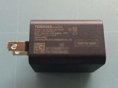 TOSHIBAのロゴが、人差し指をボタンの上に置いて筆記するときサイド方向に、タブを使用して本体横に取り付けたとき正面(液晶表示面)に見えるデザインになっています。