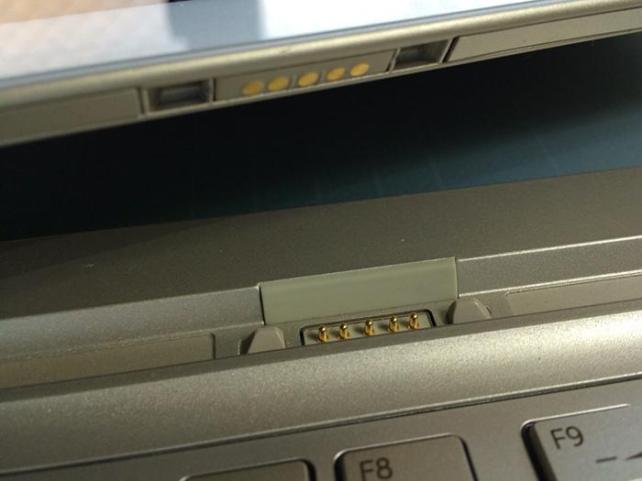 キーボードと本体は、電気的にバネ付きのピンによって接触して通信を行ないます。キーボードから本体を離すとキーボードは効かなくなります。