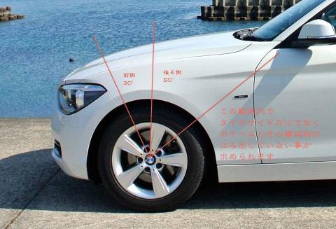 現在の保安基準では、ホイールの中心点から真上に引いた基準点から、