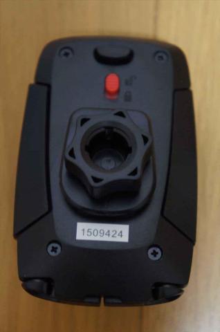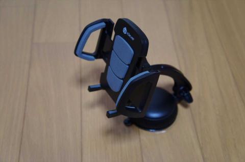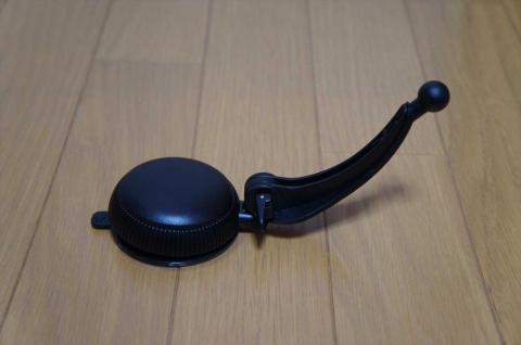 こういう角度で使うかは別として、ここまで動かすことができます。粘着タイプの吸盤が付いているので、ガラス面はもちろんのこと、ダッシュボードにも取り付け可能です。吸盤の固定は、台座のカップを捻ることで固定されます。