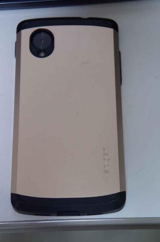 Nexus5には、このようなケースを装着しています。いわゆるハイブリッドケースで、TPUとポリカーボネート樹脂の2層構造。特にTPUは結構分厚いものです。