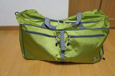 開くと、こんなに大きいバッグになります。容量85リットルと、スポーツバッグよりかなり大きいサイズになります。素材はナイロンですが、薄手であってもしっかりしています。