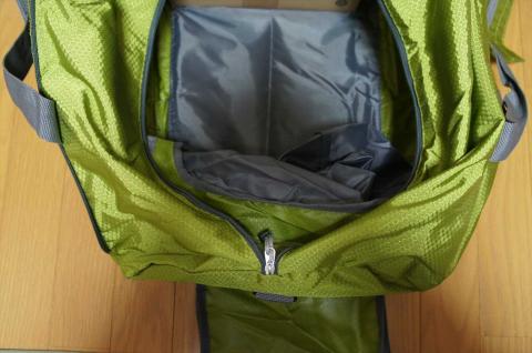 これは外からアクセスできるポケットです。頻繁に出し入れするものは、このポケットに入れておけば、出し入れも楽チンです。タオルや靴を入れておくと便利でしょう。