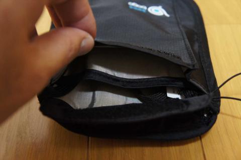 裏側は、肌触りの良い素材で、不織布のようです。そして隠しポケットも装備。