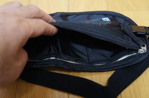 ファスナー付きのポケットが2つありますが、こちらは手前側のポケット。中にも2つのポケットを装備。左右対称ではないので、大きいものと小さいものを分けて入れられます。