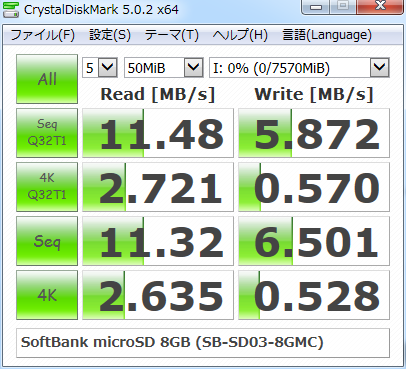 転送速度はリード10MB/s、ライト5MB/sとclass4の条件は満たしていますがclass10の製品と比べるとかなり遅いです。