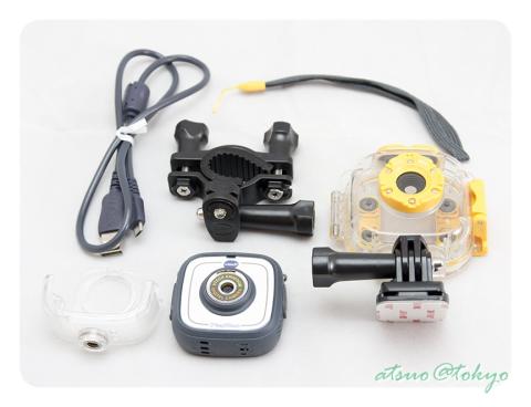 付属品はアクションカメラを楽しむのに必要十分で、自転車用マウントや防水ケース等が付いてきました。