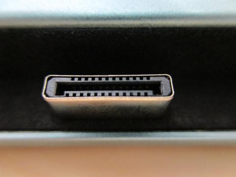 マイクロホン/ヘッドホン・コンボジャックで右下のキーボード側に