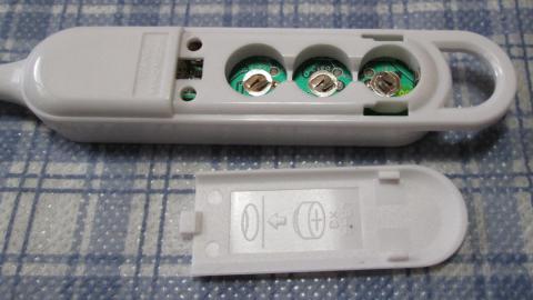 使用電池は LR44 が 3個。maxell の電池が付属していました。