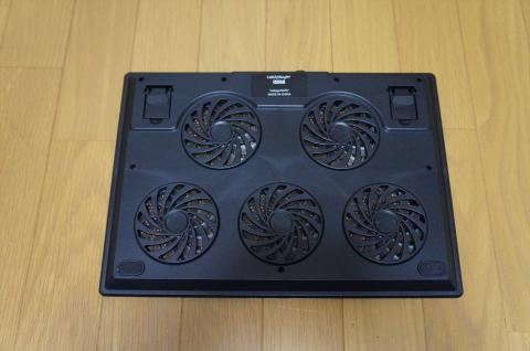 15インチのノートパソコンまで対応しています。ファンは5個を搭載。静音ファンを使っていますが、動作音は、ノートパソコンのファンよりは大きいです。