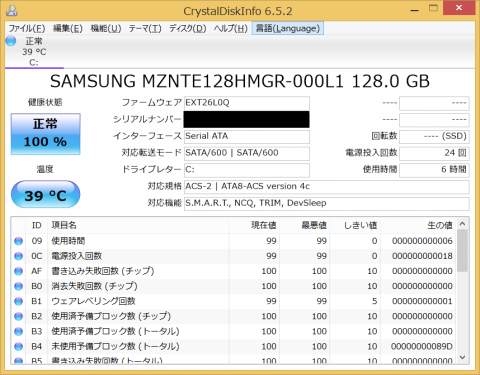また素性が気になったのでSSDの情報をCDIで見てみました。(HWMでチラ見してますが)