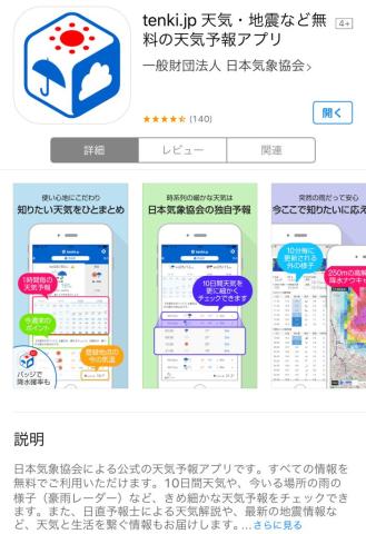 何か無いかなと探したら日本気象協会のアプリを発見。