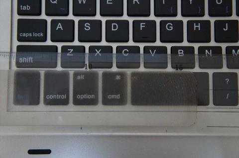 背面には、リンゴのマークのところに窓があります。キーボードとの結合部は、カバーされていません。もしこれが気になるようなら、カバーシールを貼ると良いでしょう。「カバーシール」で検索すると、すぐに見付かるはずです。