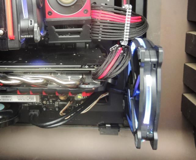 結果、写真右下のコントローラーが二つに増えてマザートレイ側に設置出来なくなったので、開閉の手間も考慮して裏配線側に12㎝用と並べて設置した。