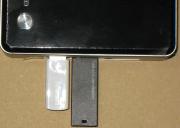 マウスのレシーバーとUSBメモリを挿した状態。間隔はギリギリ