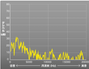 起動時(図11)と比べ、最大音量はほぼ変わらないが、5000~15000[Hz]の音量が増え、