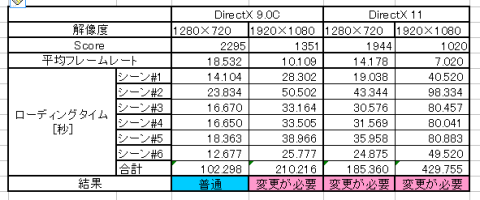 ベンチマークにスコアがDirectX11 解像度1280×720の約半分だった結果が出ている