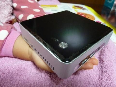 三歳児の手よりは大きいですが、さすがNUCです。小型サイズです。