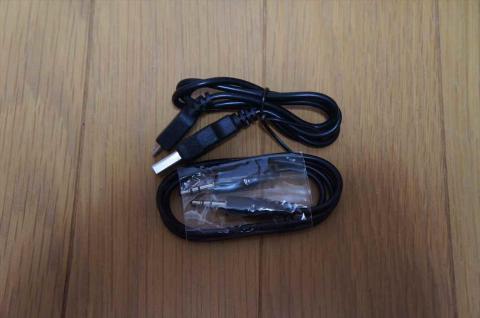 充電用のMicroUSB-USBケーブルと、音声入力用のステレオミニケーブルも付属しています。