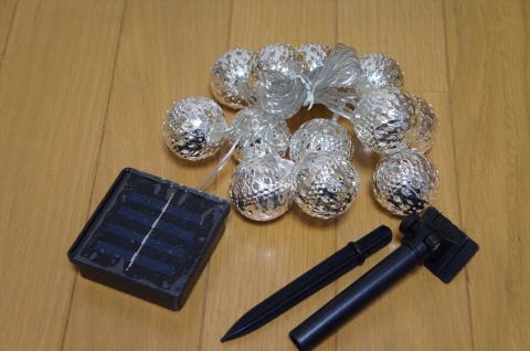 12個のLEDライトとソーラーパネルのセットです。ソーラーパネルにはスタンドも付属しています。
