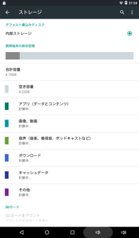 本体が8GBで、初期状態のストレージの空きは4.22GB。
