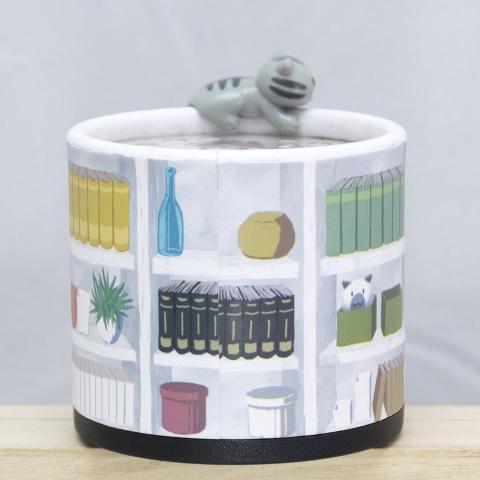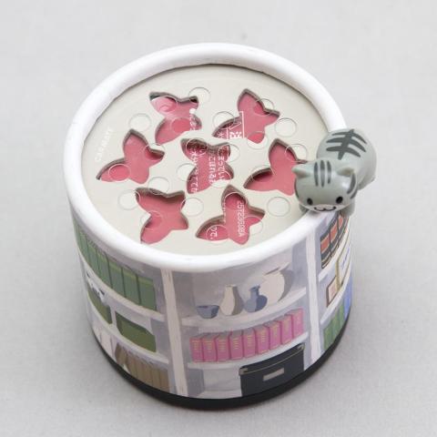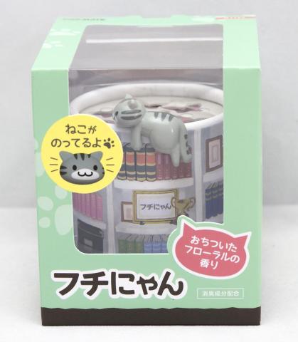 「ねこあるある!を形にした癒されフレグランス」と製品ページにあるように、数種類あるうちの「フローラル」の香りの「本棚でくつろぐ サバトラフチにゃん」です。