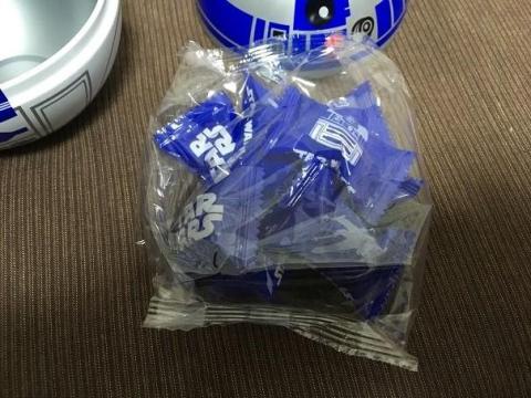 丸い缶にR2-D2をかたどったようなプリントが施されており、中にチョコレートが個包装で入ってます。