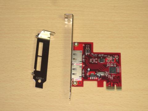 eSATAを2ポート搭載したPCI-Ex1用拡張ボード。