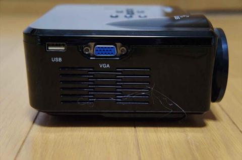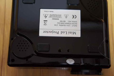 裏面には、三脚用の穴があります。本体も軽いので、三脚に取り付けての投影も可能。