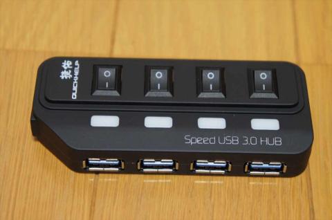 バスパワー動作、コンパクト、スイッチ付き、充電も可能という特徴のUSB3.0ハブです。