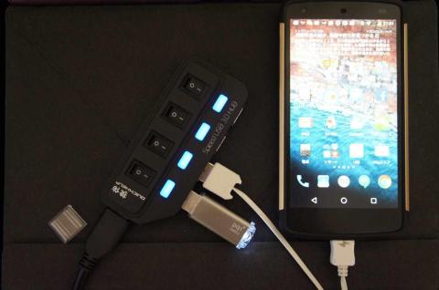 USB3.0対応USBメモリーを接続し、Nexus5には充電をしましたが、どちらも問題なく動作しました。