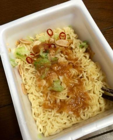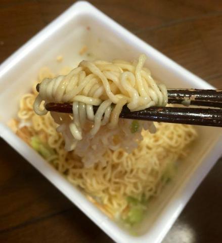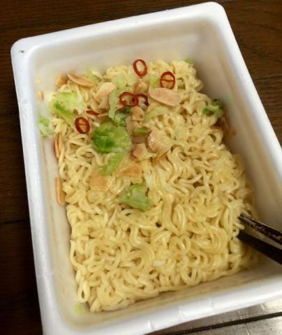 今までのカップ麺にないほどのにんにくチップが。。