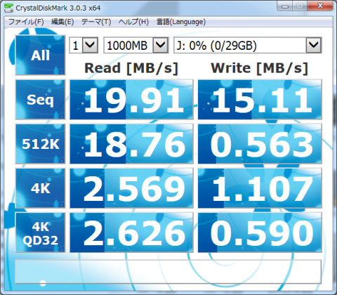 USB2.0カードリーダしか持ってないので参考値にしかなりませんが、とりあえず。