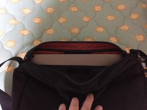 こちらのPCサイズは291x209.5x8.45mmですが、PC収納部をほぼいっぱいまで使用して収納。