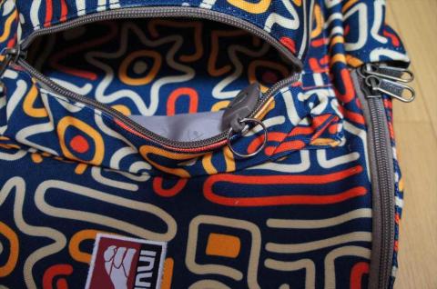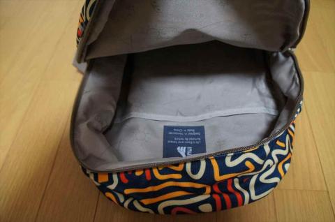 両引きファスナーの大きいポケットは、中には裏地も貼ってあり、商品作りへのこだわりが伺えます。内ポケットには、10インチクラスのタブレットは難なく入るでしょう。