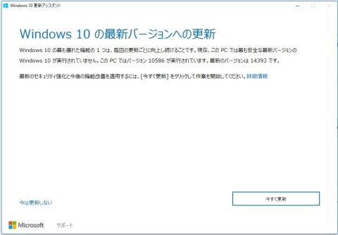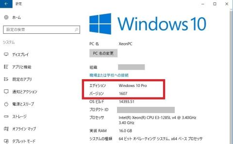 Windows 10 Anniversary Updateの適用しました(2016/08/15)