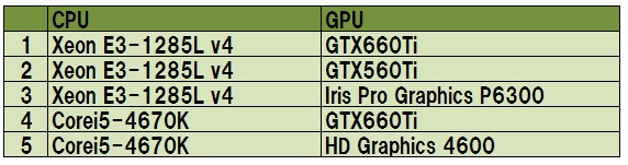 Xeon E3-1285L v4の内蔵GPUの方が何度計測しても速くて良い結果になります。