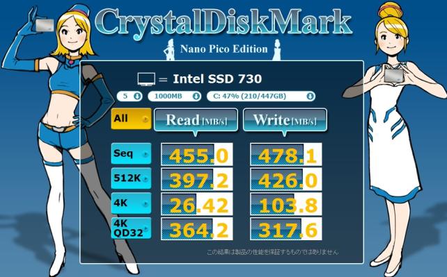 SSDには、インテル Solid-State Drive 730 480GB を用意しています。
