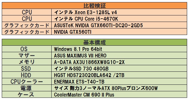 Core i5-4670Kを比較対象にして、Xeon E3-1285L v4の実力を確認していきます。