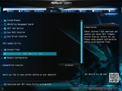 そこでUEFI内のメニューからインターネット経由のアップデート(Internet Flash DHCP)を実行してみます。