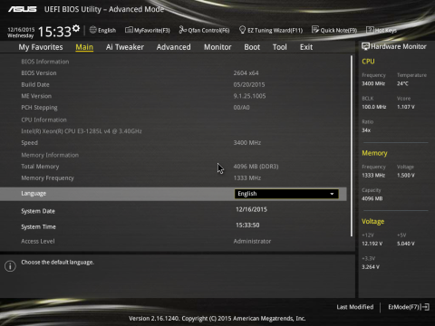 私のZ97-Kはジャンク復旧品であり、動作確認した際にEZ Flash 3によって、第5世代Coreプロセッサー対応のBIOS(Ver.2604)への更新は実行しています。この状態でインテル(R) Xeon(R) プロセッサー E3-1285L v4を搭載したらどうなるのか、試してみました。なお、今回利用したZ97-Kは直前まではPentium G3258で動作させていました。