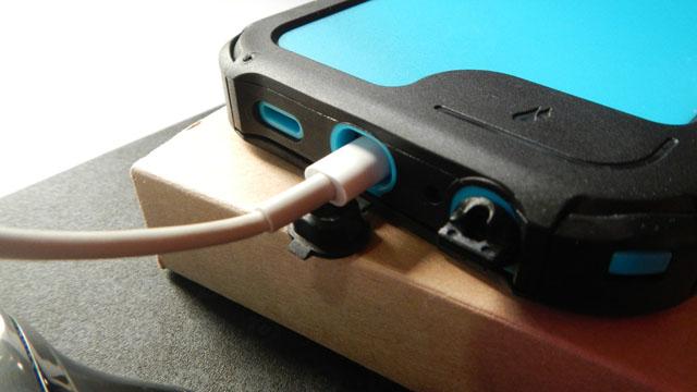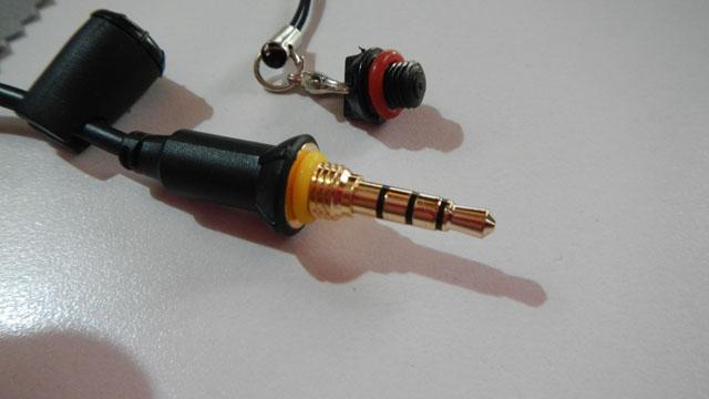 付属のイヤホンケーブルは防水パッキン付きねじ込み式