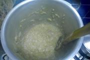 牛乳にリンゴと人参、砂糖を加えてフルーツソースに仕立てて投入